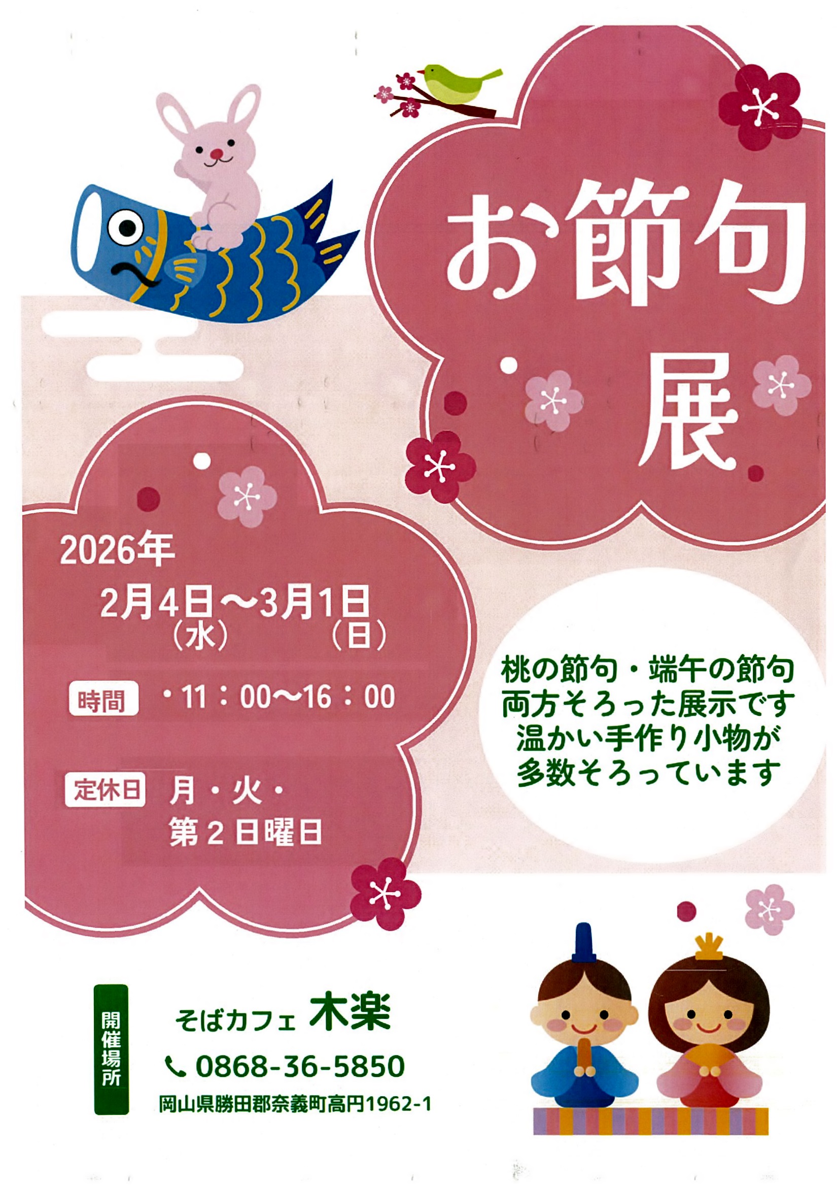 木楽ギャラリー2F、2026年2月の企画展は、『お節句展』です。