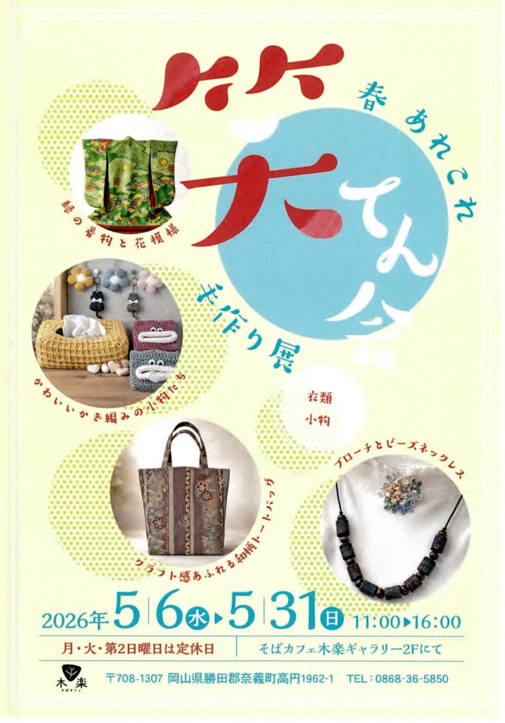 木楽ギャラリー2F、2026年5月の企画展は、『春 あれこれ手作り展』です。