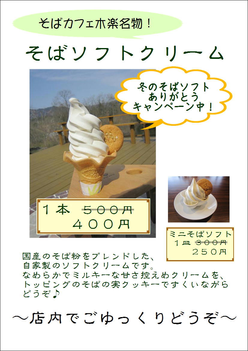 そばカフェ木楽では、ただいま『冬のそばソフトありがとうキャンペーン』中です!